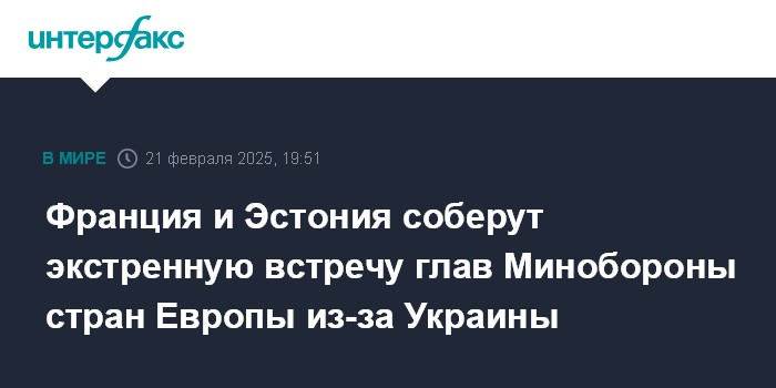 Москва. 21 февраля. INTERFAX.RU - Франция и Эстония 24 февраля организуют чрезвычайное заседание министров обороны европейских стран на тему поддержки Украины, сообщает в пятницу Bloomberg со ссылкой на источники.