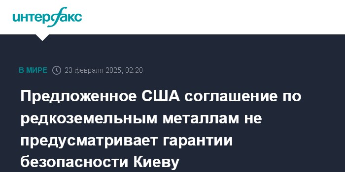 Предложенное США соглашение по редкоземельным металлам не предусматривает гарантии безопасности Киеву