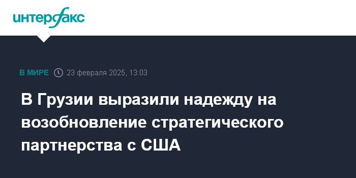 Москва. 23 февраля. INTERFAX.RU - Грузия желает не только перезагрузки отношений с США, но и возобновления стратегического партнерства, заявил в воскресенье журналистам премьер-министр республики Ираклий Кобахидзе.