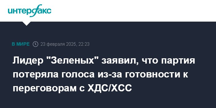 Лидер "Зеленых" заявил, что партия потеряла голоса из-за готовности к переговорам с ХДС/ХСС
