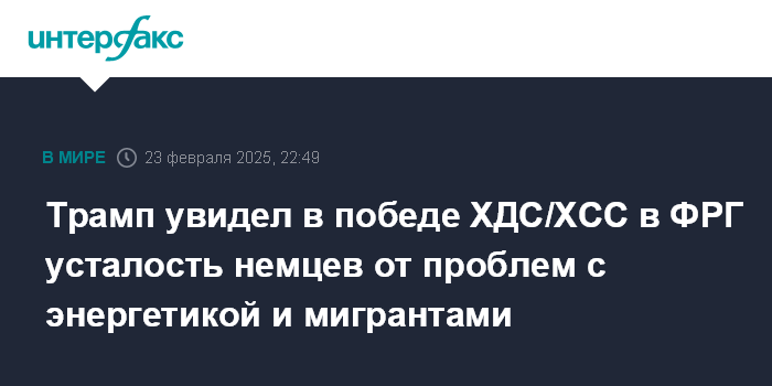 Трамп увидел в победе ХДС/ХСС в ФРГ усталость немцев от проблем с энергетикой и мигрантами