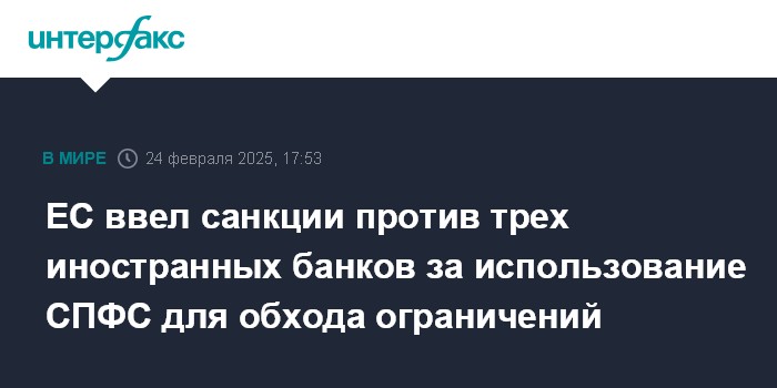 ЕС ввел санкции против трех иностранных банков за использование СПФС для обхода ограничений