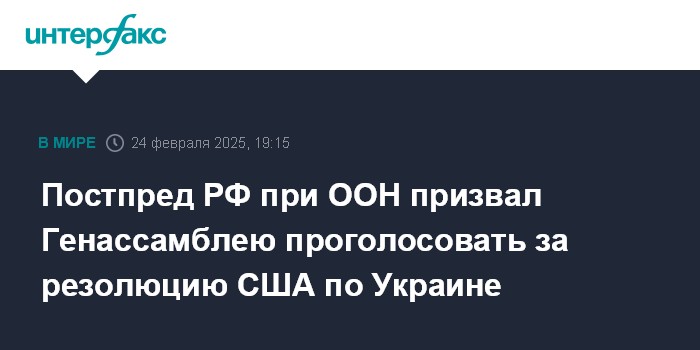 Постпред РФ при ООН призвал Генассамблею проголосовать за резолюцию США по Украине
