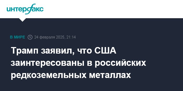 Москва. 24 февраля. INTERFAX.RU - У России есть ресурсы, в которых заинтересованы США, в частности - редкоземельные металлы, заявил в понедельник президент США Дональд Трамп.