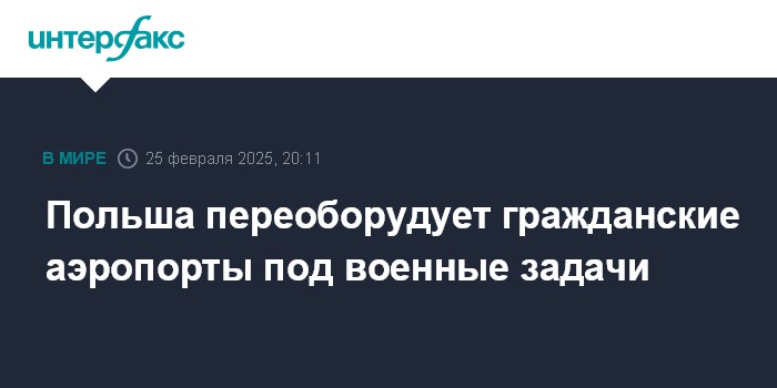 Москва. 25 февраля. INTERFAX.RU - Гражданские аэропорты Польши адаптируют под выполнение военных задач, сообщил министр обороны Польши Владислав Косиняк-Камыш. Его слова цитирует агентство PAP.