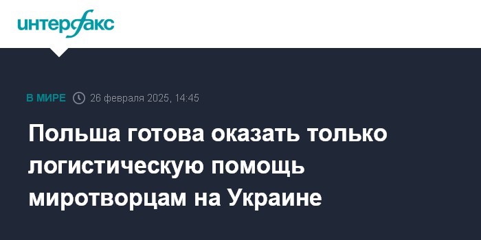 Москва. 26 февраля. INTERFAX.RU - Польша готова оказать логистическую поддержку миротворческой миссии на Украине, если решение о ней будет принято, заявил глава польского правительства Дональд Туск. Его видеообращение выложено в его соцсетях.