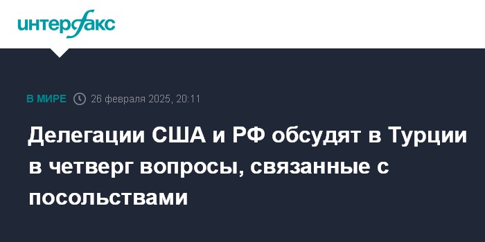 Делегации США и РФ обсудят в Турции в четверг вопросы, связанные с посольствами