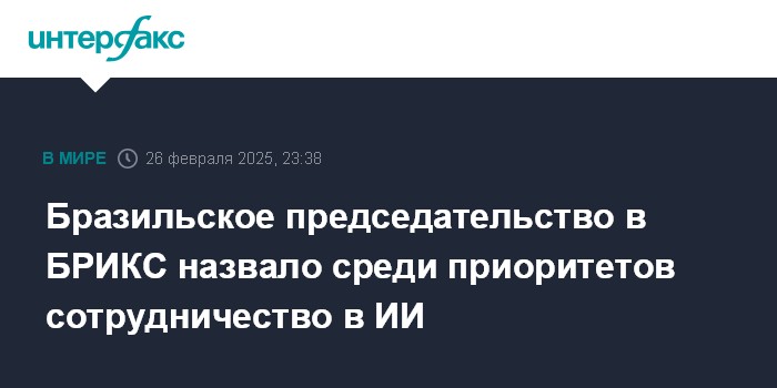 Бразильское председательство в БРИКС назвало среди приоритетов сотрудничество в ИИ
