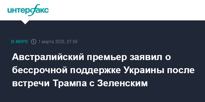 Австралийский премьер заявил о бессрочной поддержке Украины после встречи Трампа с Зеленским