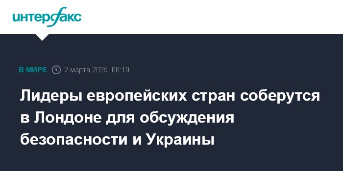 Москва. 2 марта. INTERFAX.RU - Лидеры более чем десяти европейских стран в воскресенье проведут переговоры в британской столице по украинской теме и вопросам безопасности.