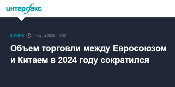 Объем торговли между Евросоюзом и Китаем в 2024 году сократился