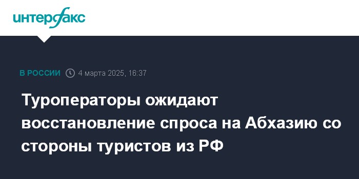 Москва. 4 марта. INTERFAX.RU - Туроператоры ждут улучшения ситуации в Абхазии после выборов, а также полного восстановления спроса на это популярное направление, сообщает пресс-служба Российского союза туриндустрии (РСТ).