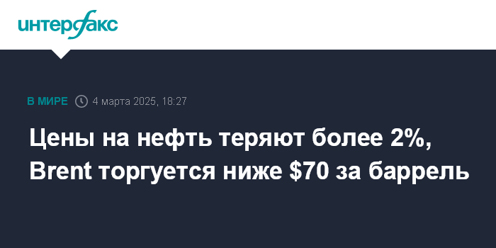Цены на нефть теряют более 2%, Brent торгуется ниже $70 за баррель