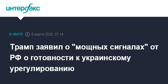 Трамп заявил о "мощных сигналах" от РФ о готовности к украинскому урегулированию