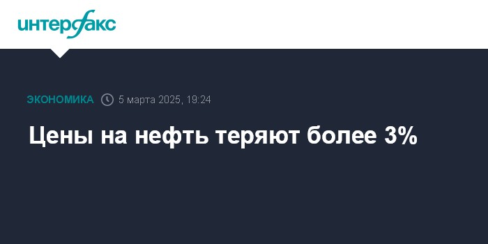 Москва. 5 марта. INTERFAX.RU - Котировки нефти снижаются больше чем на 3% на ожиданиях ослабления глобального спроса при увеличении предложения. Падение ускорилось после публикации еженедельного доклада Министерства энергетики США, показавшего увеличение запасов нефти в стране.