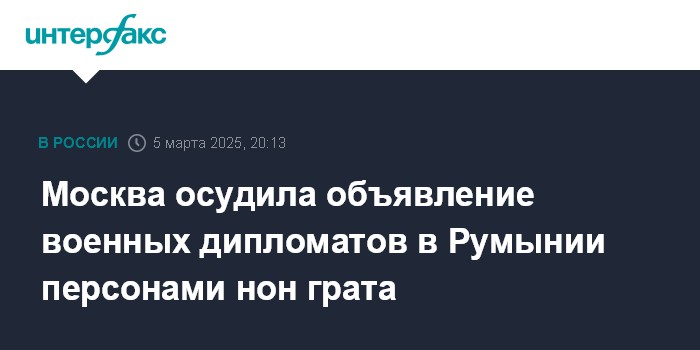 Москва. 5 марта. INTERFAX.RU - Москва считает необоснованным решение румынских властей об объявлении персонами нон грата военного атташе и его помощника при российском посольстве в Румынии.