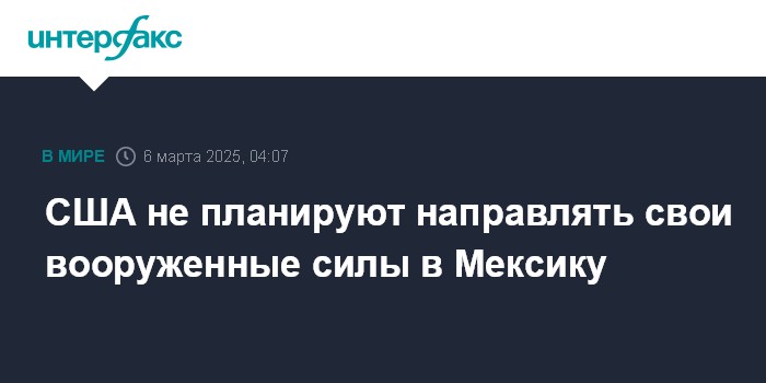 Москва. 6 марта. INTERFAX.RU - Администрация США не рассматривает варианты отправки американских военных на территорию Мексики для борьбы с наркокартелями, заявил вице-президент США Джей Ди Вэнс.