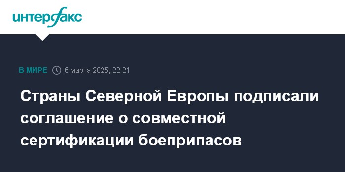 Москва. 6 марта. INTERFAX.RU - Финляндия, Норвегия, Швеция и Дания подписали сертификационный документ для гармонизации процесса сертификации боеприпасов между странами Северной Европы, сообщило в четверг министерство обороны Финляндии.
