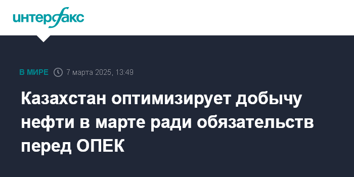 Казахстан оптимизирует добычу нефти в марте ради обязательств перед ОПЕК