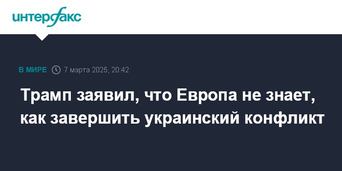Москва. 7 марта. INTERFAX.RU - Лидеры европейских стран не представляют, как решить украинский кризис, заявил в пятницу президент США Дональд Трамп.