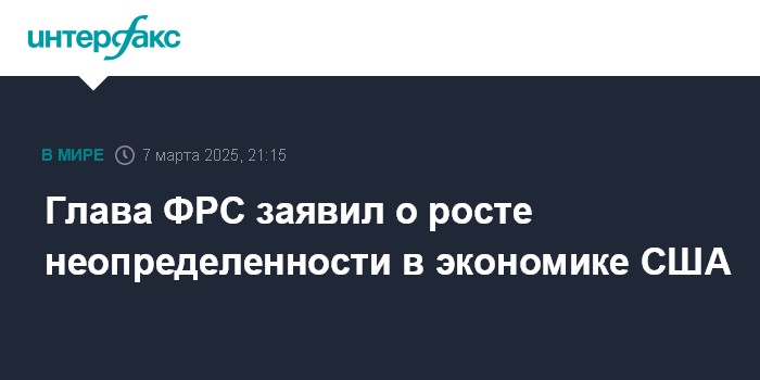 Москва. 7 марта. INTERFAX.RU - Американская экономика остается сильной, несмотря на возросшую неопределенность, заявил председатель Федеральной резервной системы (ФРС) Джером Пауэлл на мероприятии школы бизнеса Бута при Чикагском университете в пятницу.