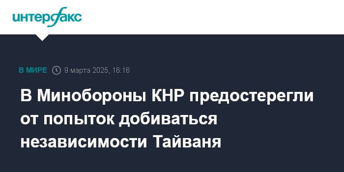 В Минобороны КНР предостерегли от попыток добиваться независимости Тайваня