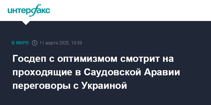 Госдеп с оптимизмом смотрит на проходящие в Саудовской Аравии переговоры с Украиной
