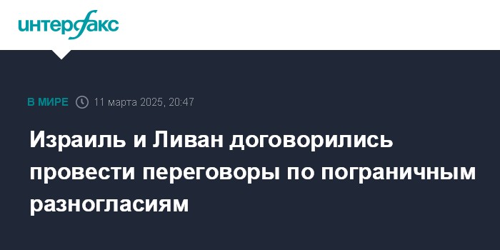 Москва. 11 марта. INTERFAX.RU - Израиль и Ливан согласились провести переговоры, на которых обсудят пограничные разногласия и проблему присутствия Армии обороны Израиля (ЦАХАЛ) на юге Ливана, сообщает во вторник The Times of Israel со ссылкой на канцелярию израильского премьера Биньямина Нетаньяху.