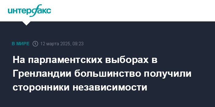 Москва. 12 марта. INTERFAX.RU - Сторонники независимости Гренландии одержали победу на состоявшихся 11 марта выборах в местный парламент, сообщает Датское радио.