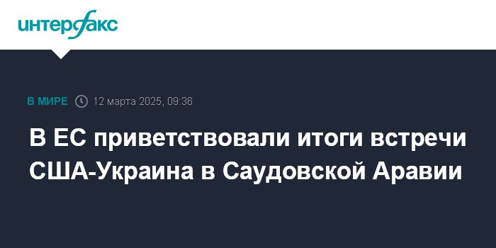 Москва. 12 марта. INTERFAX.RU - В Евросоюзе положительно отреагировали на встречу США-Украина в Саудовской Аравии и заявили о готовности в полной мере участвовать в поддержке предстоящих шагов вместе с Украиной, США и другими партнерами.