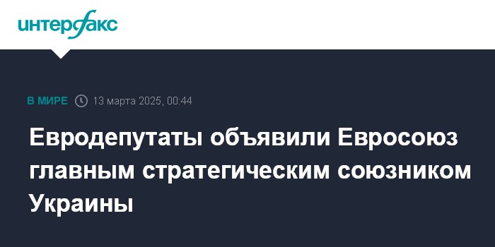 Москва. 13 марта. INTERFAX.RU - В резолюции Европарламента (ЕП), принятой на проходящей в Страсбурге пленарной сессии ЕП, евродепутаты заявили, что главным стратегическим союзником Украины теперь является Евросоюз и он должен помогать Киеву.