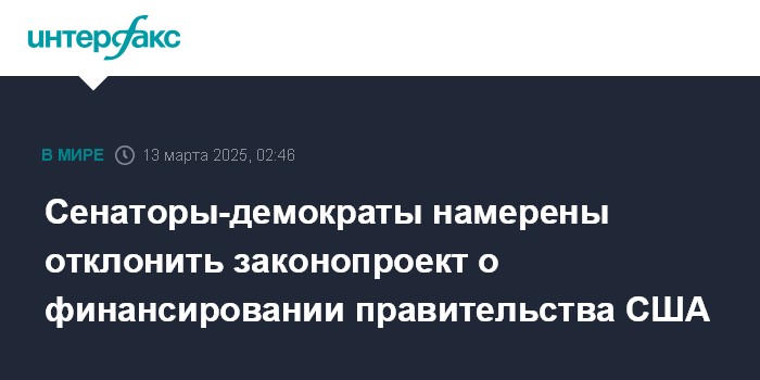 Демократы выступают за принятие резолюции о временном финансировании на срок до 11 апреля, который бы предоставил сенаторам больше времени, чтобы договориться об устраивающем обе стороны варианте.