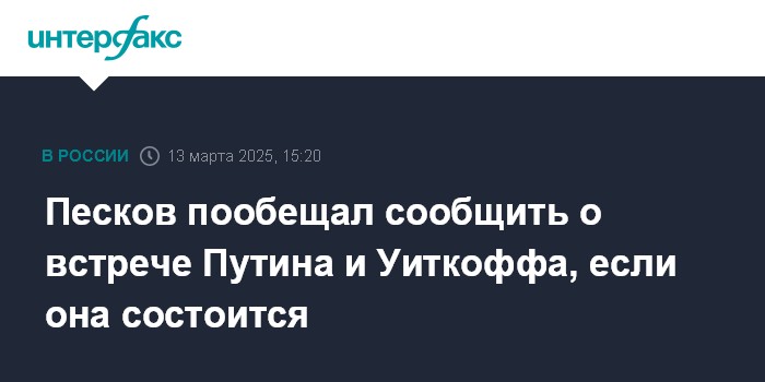 "Мы своевременно проинформируем", - сказал Песков Первому каналу, отвечая на вопрос, можно ли рассчитывать, что президент лично примет Уиткоффа.