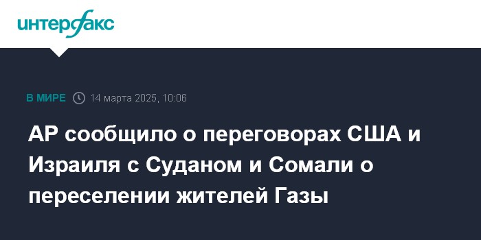 AP сообщило о переговорах США и Израиля с Суданом и Сомали о переселении жителей Газы
