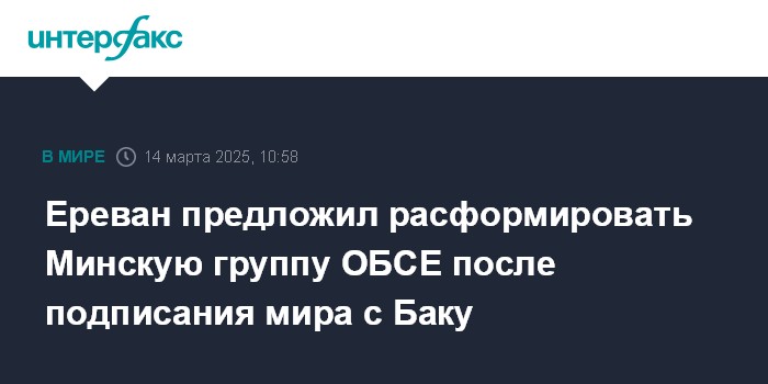 Ереван предложил расформировать Минскую группу ОБСЕ после подписания мира с Баку