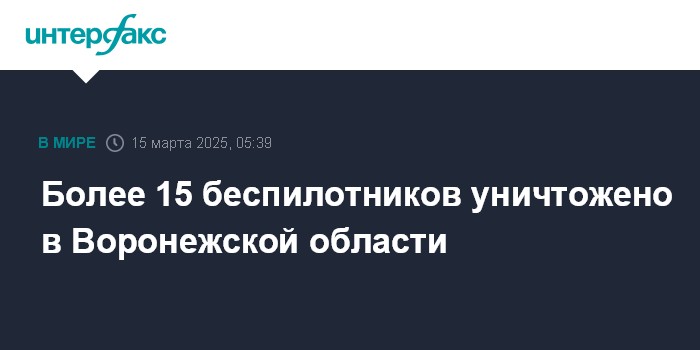 Москва. 15 марта. INTERFAX.RU - Губернатор Воронежской области Александр Гусев сообщил о 15 дронах, уничтоженных над территорией региона.