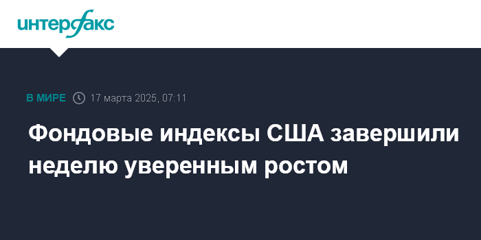 Москва. 17 марта. INTERFAX.RU - Американские фондовые индексы завершили пятницу уверенным ростом после существенного снижения ранее на прошлой неделе, сообщает Trading Economics.