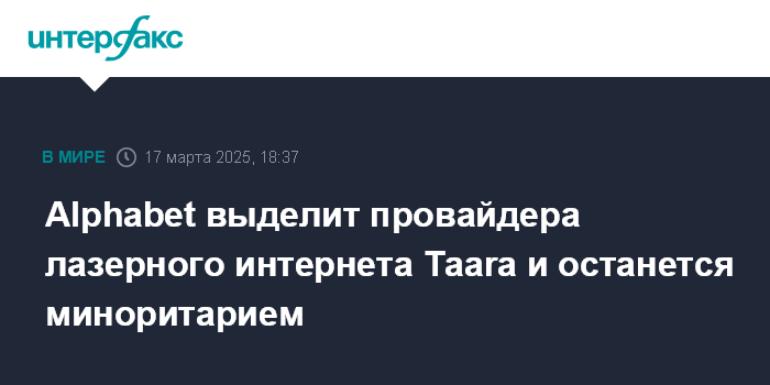 Alphabet выделит провайдера лазерного интернета Taara и останется миноритарием