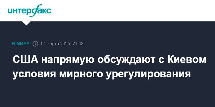 США напрямую обсуждают с Киевом условия мирного урегулирования