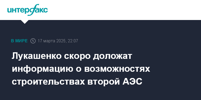 Ранее Лукашенко неоднократно инициировал строительство второй АЭС в Белоруссии или еще одного энергоблока на действующей АЭС. По его поручению Минэнерго Белоруссии в этом году представит ТЭО строительства второй АЭС или третьего энергоблока на БелАЭС.