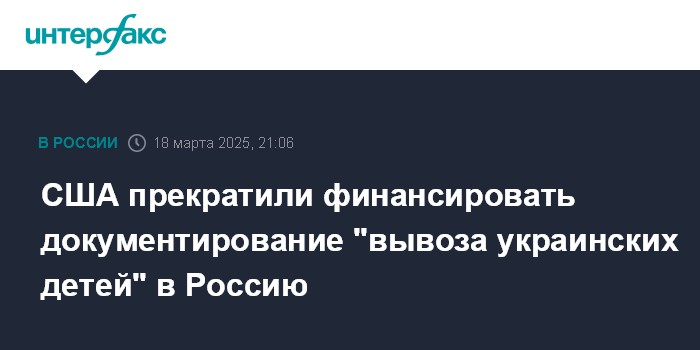 Москва. 18 марта. INTERFAX.RU - Администрация президента США Дональда Трампа объявила о прекращении финансирования программы, в рамках которой отслеживались судьбы детей с Украины, которых вывозили на территорию России, пишет The Washington Post.