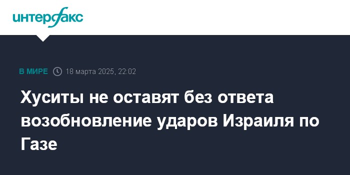 Москва. 18 марта. INTERFAX.RU - Йеменские мятежники-хуситы во вторник заявили, что предпримут действия в связи с возобновлением ударов Израиля по сектору Газа.