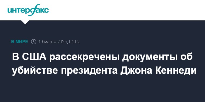 Москва. 19 марта. INTERFAX.RU - Национальный архив США в соответствии с указанием президента Дональда Трампа опубликовал все рассекреченные документы, касающиеся убийства бывшего главы государства Джона Кеннеди.