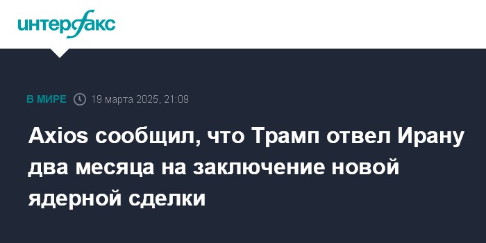 "Один представитель властей США и два источника, знакомых с письмом, заявили Axios, что письмо Трампа к Хаменеи включает срок в два месяца на достижение новой ядерной сделки", - информирует портал.