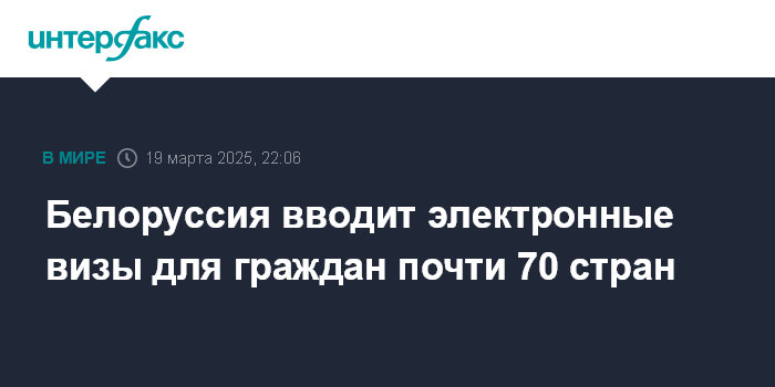 "С 20 марта 2025 г. иностранные граждане могут въезжать в Беларусь по электронной визе... Такая опция доступна владельцам обычных паспортов 67 государств, в том числе США, Канады, государств ЕС, Австралии, Новой Зеландии, Японии, Великобритании и других стран", - проинформировали в пресс-службе МИД.