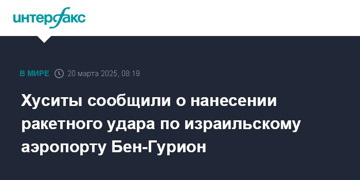 Хуситы сообщили о нанесении ракетного удара по израильскому аэропорту Бен-Гурион