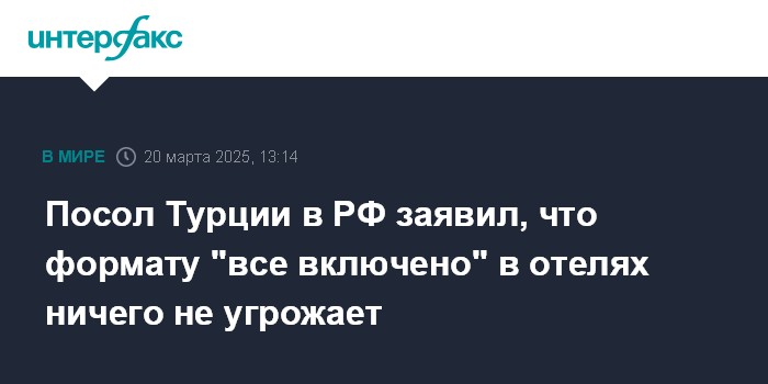 Посол Турции в РФ заявил, что формату "все включено" в отелях ничего не угрожает
