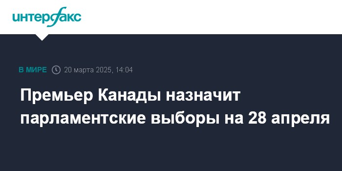 Москва. 20 марта. INTERFAX.RU - Премьер-министр Канады Марк Карни в воскресенье объявит о намерении провести парламентские выборы 28 апреля, сообщает в четверг газета The Globe and Mail со ссылкой на источники.