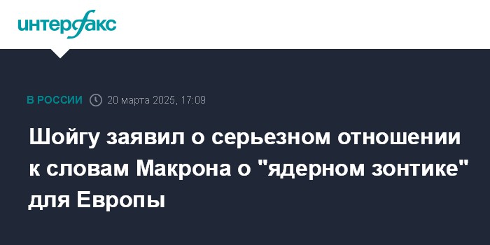 Шойгу заявил о серьезном отношении к словам Макрона о "ядерном зонтике" для Европы