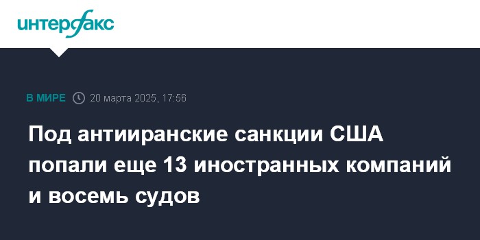 Москва. 20 марта. INTERFAX.RU - Министерство финансов СШ объявило о расширении санкционного списка зарубежных компаний, связанных с Ираном.